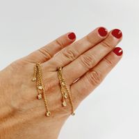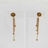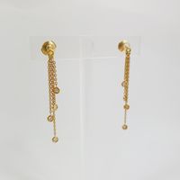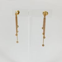 DIOR, modèle "Soumission": Paire de pendants d'oreilles en or 750 mil composés de 4 chaînes retenant un diamant en serti clos (0,05 carat environ chacun), signés et numérotés A9126 sur les systèmes Alpa. (Longueur : 5,5 cm environ). 3,2 g. brut.