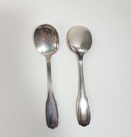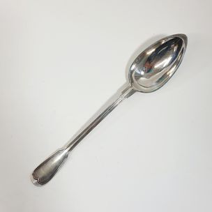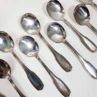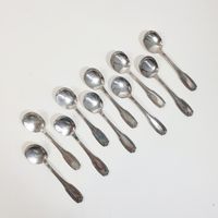 DIXI, années 50 : Suite de 10 cuillers à glace en métal argenté, modèle à filet de perles et agrafe d'acanthe, poinçon de Maître. Très légère usure d'usage.