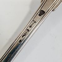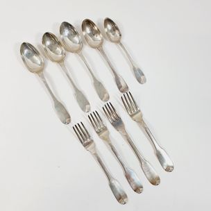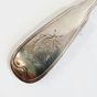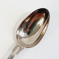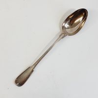 Louis Antoine TAILLEPIED (actif à Paris de 1760 à 1806) : Cuiller à ragoût, modèle filet, en argent 950 mil, datée 1787. Poinçon de Maître : Pied tourné couronné, 2 grains de remède. Poinçon de maison commune de 1787. Poinçon de charge : A couronné pour Paris. Poinçons de décharge : tête de perroquet et insecte. Poids : 193,5 g Long. 32,5 cm Chiffrée "JR", légère usure d'usage, petits chocs et déformations.