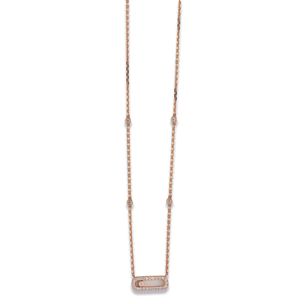 500 / 800 €MESSIKA, modèle « Move Uno ». Collier articulé en or rose 750 millièmes retenant au centre un motif allongé orné de diamants ronds de taille brillant, un plus important mobile. Signé et numéroté. Longueur : 37 à 45 mm Poids brut : 4,2 g