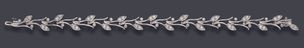 1 700 / 2 500 €TIFFANY & CO Bracelet articulé en platine 850 millièmes, les maillons à décor de feuillages ornés de diamants ronds de taille brillant. Signé. Longueur : 16,2 cm Poids brut : 30,7 g Avec un écrin et une boîte de la Maison TIFFANY & CO.