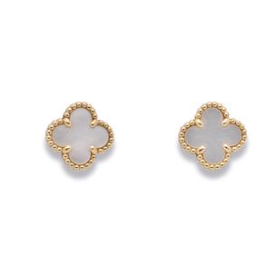 700 / 1 000 €VAN CLEEF & ARPELS, modèle « Sweet Alhambra». Paire de boucles d'oreilles en or jaune 750 millièmes, chacune de forme quadrilobée, le centre orné de nacre. (Usures) Signées et numérotées. Système pour oreilles percées. Hauteur : 0,9 cm Poids brut : 2,7 g