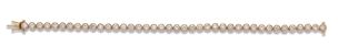 1 200 / 1 800 €Bracelet articulé en or jaune 750 millièmes entièrement orné d'une ligne de quarante diamants ronds de taille brillant sertis clos. (Usures) Longueur : 17,8 cm Poids brut : 16 g