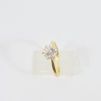 Bague en or jaune 750 millièmes ornée d’un diamant rond de taille brillant. (Usures) Tour de doigt : 60,5 Poids brut : 3,2 g Accompagnée d’un rapport de CGL no 34149 du 13/09/2025 précisant : - Masse : 2,16 ct - Couleur : J - Pureté : VS2 - Fluorescence : « Faint » - Dimensions : 8,07 - 8,13 × 5,35 mm