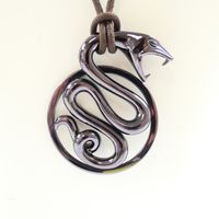 BOUCHERON, modèle «Trouble ». Pendentif en argent 800 millièmes teinté marron figurant un serpent. Signé et numéroté. Hauteur : 6 cm Poids brut : 33,3 g On y joint un collier cordonnet.