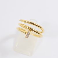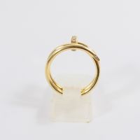 CARTIER, modèle « Juste un Clou ». Bague en or jaune 750 millièmes figurant un clou enroulé, les extrémités ornées de diamants ronds de taille brillant. (Usures et déformation) Signée et numérotée. Tour de doigt : 54 Poids brut : 5,5 g