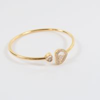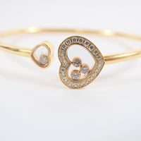 CHOPARD, modèle « Happy Hearts ». Bracelet rigide ouvert en or jaune 750 millièmes, les extrémités décorées de motifs cœurs ornés de diamants, certains mobiles sous verre. Signé et numéroté. (Usures) Diamètre intérieur : 5,5 cm Poids brut : 11,3 g E) Art524bis du CGI, al.C
