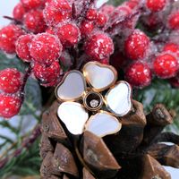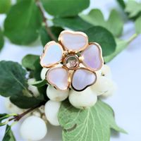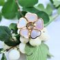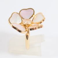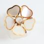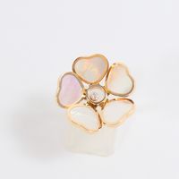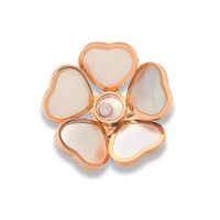 CHOPARD, modèle « Happy Hearts Flowers ». Bague en or jaune 750 millièmes, figurant une fleur, les pétales ornés de nacre, le centre renfermant un diamant rond de taille brillant mobile sous verre. Signée et numérotée. Tour de doigt : 55 Poids brut : 8,3 g Avec une pochette de la Maison CHOPARD.