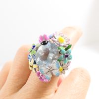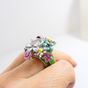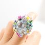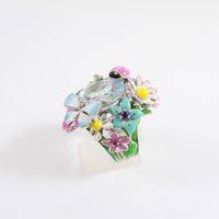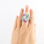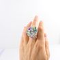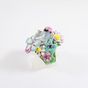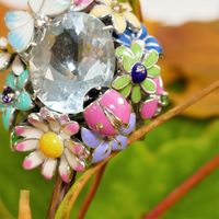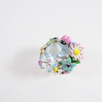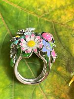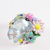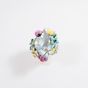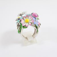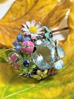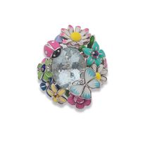 DIOR, modèle « Diorette ». Bague en or gris 750 millièmes, le centre orné d’une aigue-marine dans un entourage de fleurs, coccinelle et papillon émaillés en polychromie. (Égrisures et manque à l’émail) Signée et numérotée. Tour de doigt : 53 environ Poids brut : 32,9 g Avec un écrin de la Maison DIOR