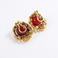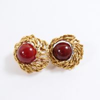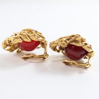 GILBERT ALBERT Paire de boucles d’oreilles en or jaune 750 millièmes gravé, le centre retenant une boule de cornaline amovible. Système à pinces. Poinçonnées sur chaque. Hauteur : 2,3 cm Poids brut : 22,7 g E) Art524bis du CGI, al.C