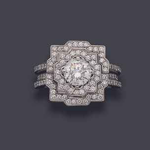 MESSIKA, modèle « Move ». Bracelet de deux rangs articulés en or gris 750 millièmes retenant au centre un motif allongé et gravé orné de diamants ronds de taille brillant, trois plus importants mobiles. (Usures) Signé et numéroté. Longueur : 13,5 à 17 cm Poids brut : 5,7 g