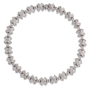 TIFFANY & CO Bracelet articulé en argent 925 millièmes gravé à décor de godrons, les maillons figurant des « X ». (Usures) Signé. Longueur : 18,5 cm Poids brut : 52,7 g Avec un écrin et une boîte de la Maison TIFFANY & CO.
