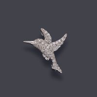 TIFFANY & CO Broche en platine 950 millièmes figurant un oiseau entièrement serti de diamants ronds de taille brillant. Signée. Longueur : 2 cm Poids brut : 3,6 g E) Art524bis du CGI, al.C