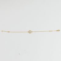VAN CLEEF & ARPELS, modèle « Sweet Alhambra ». Bracelet articulé en or jaune 750 millièmes, les maillons ajourés retenant au centre un motif quadrilobé orné de nacre. (Usures) Signé et numéroté. Longueur : 16,2 cm Poids brut : 1,7 g