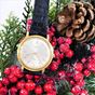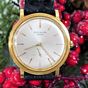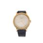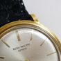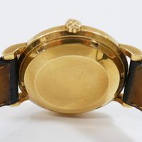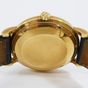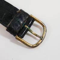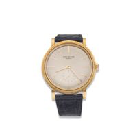 BOUCHERON, Carrée « Clou de Paris ». Montre de forme carrée. Boîtier en or jaune 750 millièmes signé. Cadran doré muet, aiguilles bâtons dorées. Mouvement mécanique à remontage manuel non signé. Dimensions : 25 × 25 mm environ. Bracelet en cuir (*) avec système de fermeture par glissière. Poids brut : 24 g. Écrin de voyage, sans papiers.