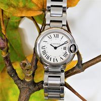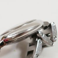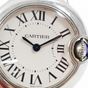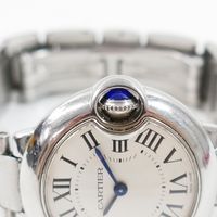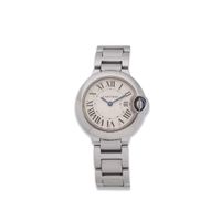 CARTIER, Ballon Bleu. Montre de forme ronde. Référence 3009. Boîtier en acier signé et numéroté 215798RX. Cadran argenté à chiffres romains, aiguilles glaives bleuies. Mouvement quartz. Diamètre : 28 mm environ. Bracelet en acier intégré avec boucle déployante signée, taille : 15,2 cm environ. Sans écrin ni papiers.