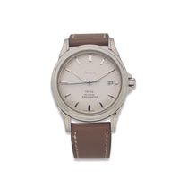 OMEGA, De Ville Co-Axial. Montre de forme ronde. Boîtier en acier signé et numéroté 80403295. Cadran argenté à index appliqués, aiguilles alpha luminescentes, guichet date à 3h. Mouvement mécanique à remontage automatique signé. Calibre 2500. Diamètre : 38 mm environ. Bracelet signé Hermès, boucle ardillon en acier non signée. Sans écrin ni papiers.