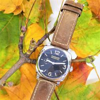 PANERAI, Radiomir. Montre de forme coussin de plongée. Référence OP6936. Boîtier en acier signé et numéroté BB1697541. Cadran noir à index et aiguilles luminescents, petite seconde à 9h. Mouvement mécanique à remontage manuel signé. Calibre P999/1 numéroté 007036. Diamètre : 43 mm. Bracelet en cuir signé avec boucle ardillon en acier signée. Boîte, surboîte, notice et papier d’origine.