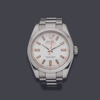 ROLEX, Milgauss. Montre de forme ronde amagnétique. Référence 116400. Boîtier en acier signé et numéroté V515913. Vers 2009. Cadran blanc à index et aiguilles luminescents. Mouvement mécanique à remontage automatique. Calibre 3131. Diamètre : 40 mm environ. Bracelet Oyster en acier avec boucle déployante signée, taille : 18 cm environ. Facture d’achat d’occasion en date du 27/02/2012. Sans écrin ni papiers.