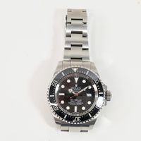 ROLEX, Sea-Dweller Deep Sea. Montre de forme ronde de plongée. Vers 2010. Référence 116660.Boîtier en acier numéroté G136396. Cadran noir à index et aiguilles luminescents, guichet date à 3H. Mouvement mécanique à remontage automatique signé. Calibre 3135. Diamètre : 40 mm. Bracelet Oyster avec boucle déployante signée, taille : 18 cm environ. Boîte, surboîte, notice, maillons supplémentaires, carte de garantie et facture