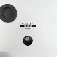 ROLEX Pendule Murale de boutique. Lunette cannelé, index appliqués. Mouvement électrique. Diamètre : 14 cm. Référence H2-209-19. Vendue en l’état.
