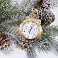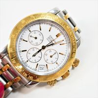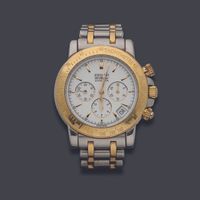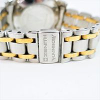 ZENITH, El Primero Rainbow. Montre de forme ronde chronographe. Référence 53-0360-400. Boîtier en acier signé. Lunette plaquée or. Cadran blanc à index appliqués, aiguilles luminescentes, trois sous-compteurs, guichet date à 4h. Mouvement mécanique à remontage automatique signé. Calibre 400. Diamètre : 39 mm environ. Bracelet en acier et plaqué or avec boucle déployante signée, taille : 17,5 cm environ. Sans écrin ni papiers.