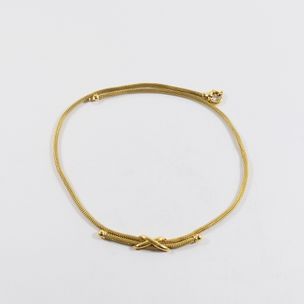 1 050 / 1 250 €Collier maillons tubulaire en or 750 mil centré d'un motif en croix (Diam : 3 mm ; Long : 44,5 cm environ) (Légères déformations). 16,9 g.Soyez au courant des ventes qui vous intéressent !