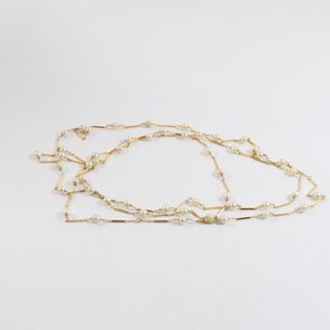 1 800 / 2 400 €Sautoir en or 750 mil à maillons batonnêts intercalés de perles de culture (Diam : de 6 à 6,3 mm environ ; certaines usées) (Long : 172 cm environ ; sans fermoir). 43,8 g brut.