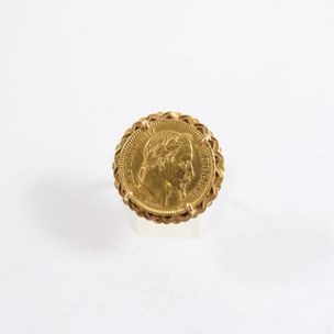 Bague en or 750 mil ornée d'une pièce de 20 frcs e