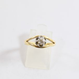 180 / 240 €Bague en fils d'or 750 mil centrée d'un diamant TA (environ 0,18 ct ; TDD : 53). 2,8 g brut.