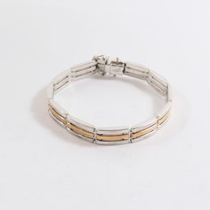 1 200 / 1 450 €Bracelet en ors de couleur 750 mil à maillons barettes articulées (Larg : 8 mm ; Long : 18 cm environ) (petits chocs et accidents, fermoir à régler). 19,2 g.