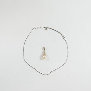 300 / 400 €Collier maillons ventiens en or gris 750 mil (Larg : 1 mm ; Long : 39 cm environ), Pendentif en or gris 750 mil orné d'une perle de culture (Diam perle : 7,8 mm environ ; Haut pendent hors bélière : 2 cm environ). 4,7 g brut.