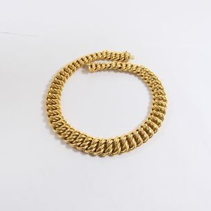 4 500 / 5 000 €Collier maillons gourmette US partiellement guilloché en chute en or 750 mil (Larg : 1,5 à 2 cm environ ; Long : 45 cm) (petits chocs). 66,3 g.