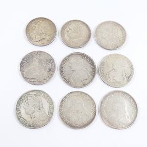9 pièces en argent dont 3 de Louis XV (1727, 1732