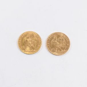 1 000 / 1 200 €2 pièces de 20 francs français en or 900 mil. 13 g.