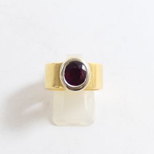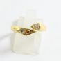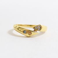 Bague croisée en or 750 mil ornée de 5 diamants dont 2 de couleur (Larg max : 6 mm ; TDD : 53). 2,6 g brut.
