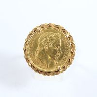 Bague en or 750 mil ornée d'une pièce de 20 frcs e