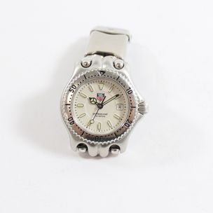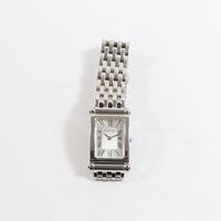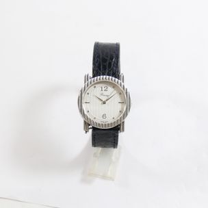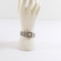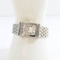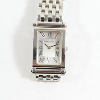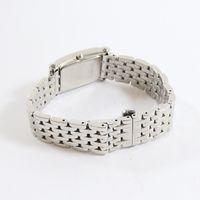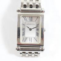 Bracelet-montre de dame en acier, boîtier rectangulaire (Dim : 19 x 32), cadran argenté à chiffres romains, tour de bras à plaquettes articulées acier (Long : 17 cm environ), MICHEL HERBELIN "Antarès" mouvement quartz.