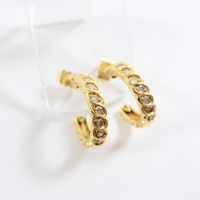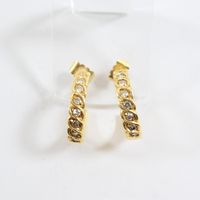Paire de créoles en or 750 mil ornées d'une ligne de diamants 8/8 dans un serti en "S" (Larg : 4 mm ; Diam : 1,8 cm environ). 6,8 g brut.
