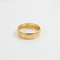 Alliance : en or 750 mil. (TDD : 60) (Largeur : 0,6 cm environ) (chiffré). 5,2 g. brut.