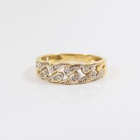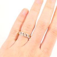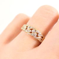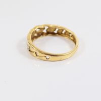 Bague : deux ors 750 mil. À chaton gourmette sertie se petits diamants brillantés. (TDD : 54). 2,5 g. brut.