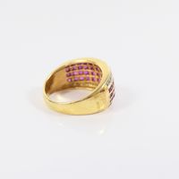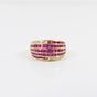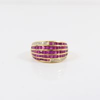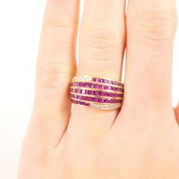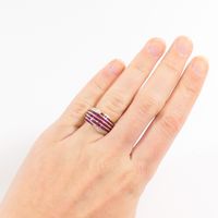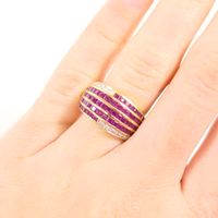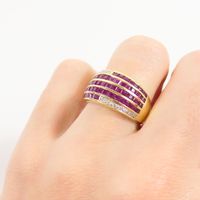 Bague bandeau : en or 750 mil. Pavée de pierres imitations rouge et de diamants 16/16. (TDD : 52). 6 g. brut.