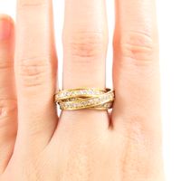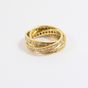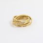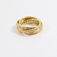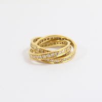Bague triple : en or 750 mil. exempté [Art. 524 bis du CGI al. C]. Ornée de diamants d'environ 0,02 carat. (TDD : 53) (éclats) (déformations). 8,2 g. brut.