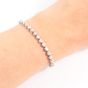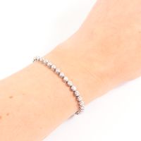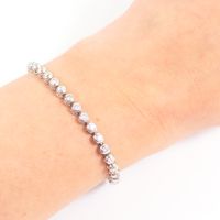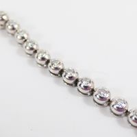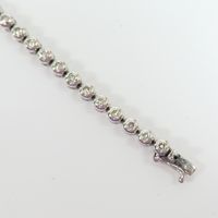 Bracelet ligne : en or gris 750 mil. À maillon articulés serti cols de 41 diamants brillantés de 0,04 carat environ chaque. Fermoir cliquet à huit de sécurité. (Longueur : 17,5 cm environ). 14,1 g. brut.