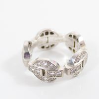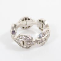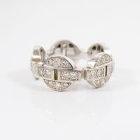 CARTIER : collection "Himalia", bague bandeau en or gris 750 mil. À motifs ornés de diamants brillantés. Travail français. Signée et numérotée. (TDD : 53). 9,2 g. brut.