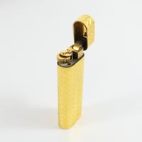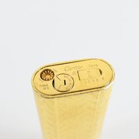 CARTIER : Briquet en métal doré ciselé. (Longueur : 7 cm environ). Signé et numéroté. (Chocs).