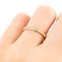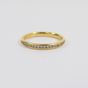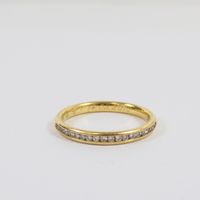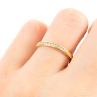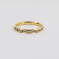 Demi-alliance américaine : en or 750 mil. Ornée d'un ligne de petits diamants. Chiffré. Travail français. (poinçon L bouteille P) (TDD : 54). 2,6 g. brut.