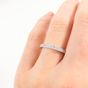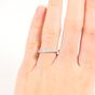 Demi-alliance américaine : en or gris 585 mil. Ornée d'une ligne de 15 diamants d'environ 0,01 carat chaque. (TDD : 55). 2,2 g. brut.