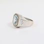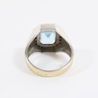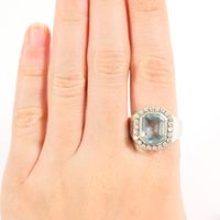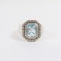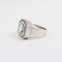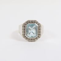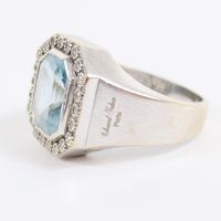 Edouard NAHUM : bague en or gris 750 mil. Ornée d'une topaze (Dim. : 11,2 x 9,1 x 5,3 mm). Travail français. Signé. (Largeur : 1,7 cm environ) (TDD : 62). 9,2 g. brut.