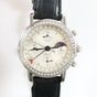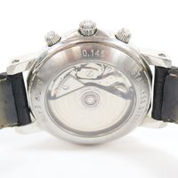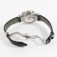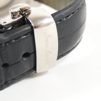 JEAN-MARCEL : Montre sur bracelet, boîtier rond en acier. Lunette diamantée. (Diam. : 36 mm environ). Cadran gris à 4 sous compteurs. Mouvement mécanique à remontage automatique. Bracelet en cuir à boucle déployante en acier signée. Signée et numérotée. (Tour de poignet : 17 cm environ).